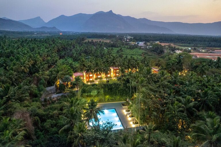 Nestled amidst the serene landscapes near the Isha Yoga Center, Mango Hill Coimbatore offers a tranquil escape with its 30 elegantly designed rooms, each providing views of lush greenery and swaying coconut trees. The resort’s multi-cuisine restaurant, Kudil, serves a variety of global and local fares, ensuring a delightful dining experience.